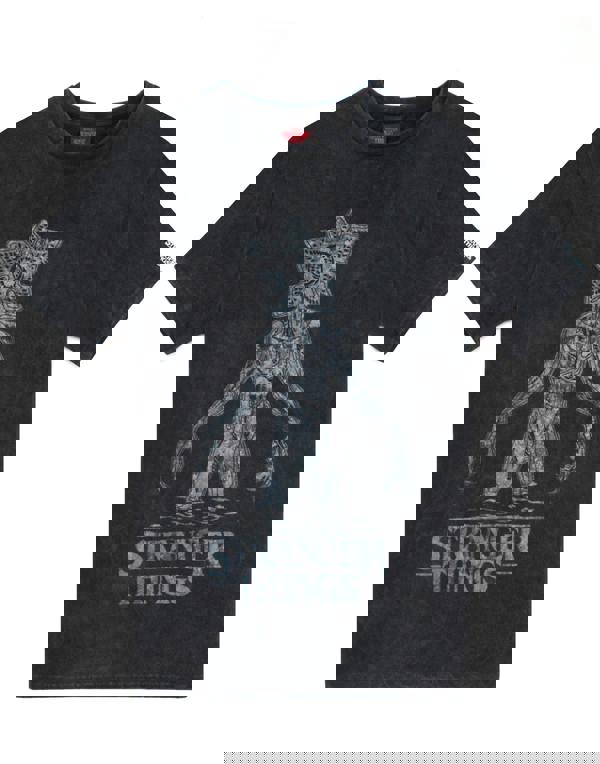 Keep a look out for the Demogorgon with Eleven, Mike, Will, and Dustin on their next adventure with this super cool Stranger Things t-shirt for women! This charcoal acid wash tee is the perfect garment for relaxing and watching your favorite Netflix Originals Series and for your everyday and costume wardrobe