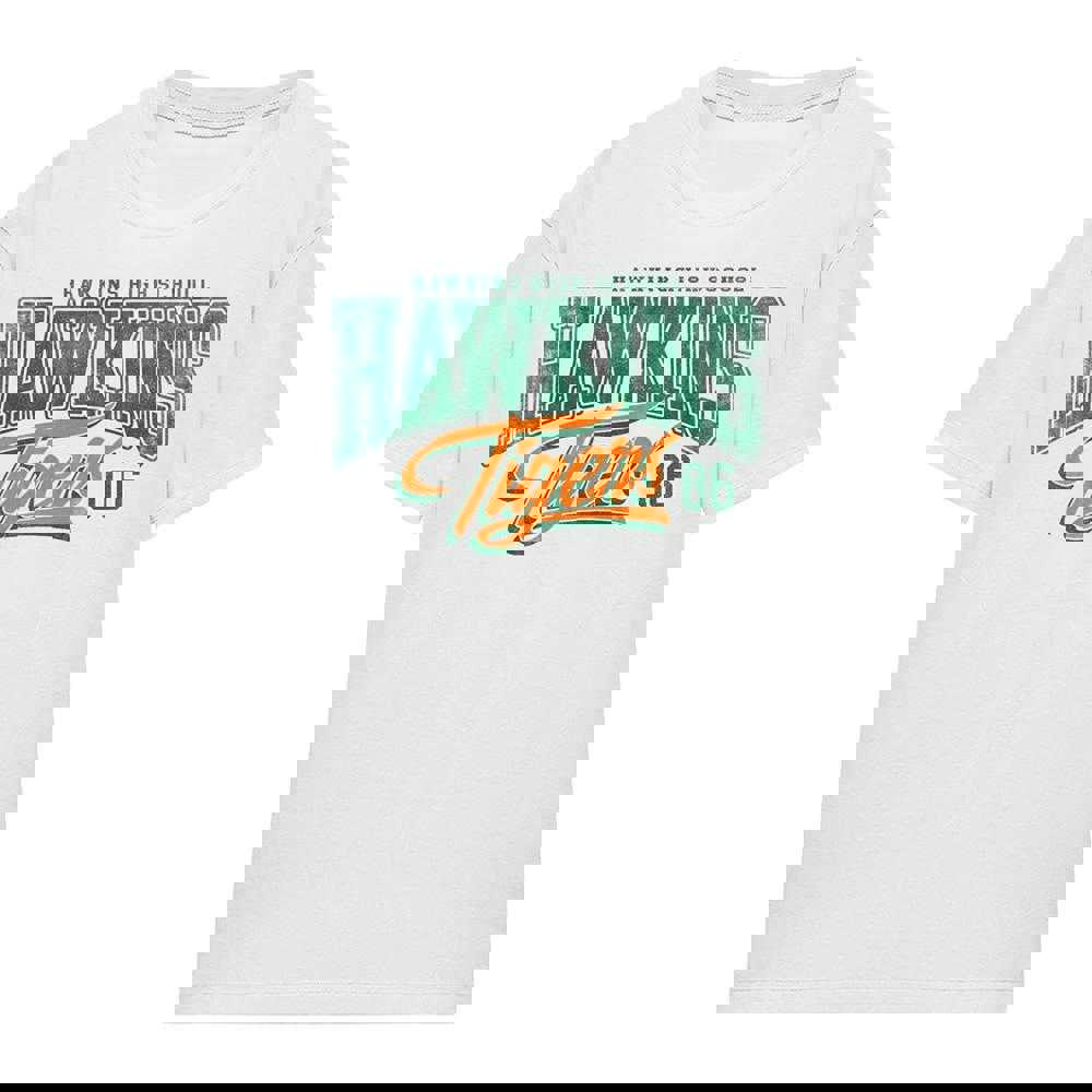 The Stranger Things Womens Hawkins Tigers 86 T-Shirt is a printed, officially licensed design for fans of the series. Finished in white, it offers an easy, everyday option that works well for casual wear and relaxed styling.