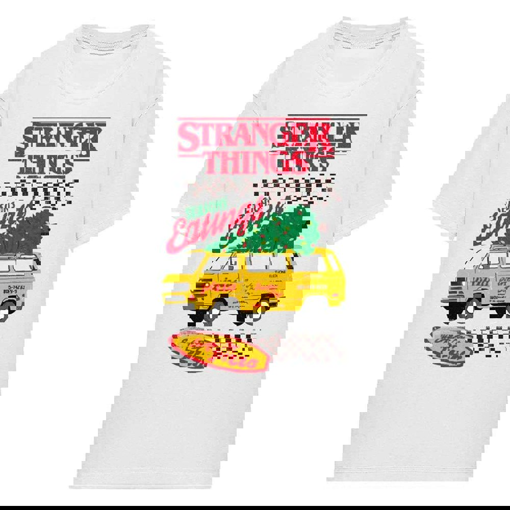 The Stranger Things Womens Seasons Eatings Pizza T-Shirt is a printed, officially licensed design for fans of the series. Finished in white, it’s an easy option for everyday wear and a simple way to add a characterful graphic to your casual wardrobe.