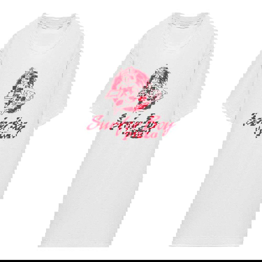 Bring a touch of Stranger Things to your everyday wardrobe with this officially licensed Surfer Boy Pizza T-Shirt for women. Designed for easy, casual wear, it features a classic crew neck and short sleeves for a clean, simple silhouette that works well on its own or layered into your look.