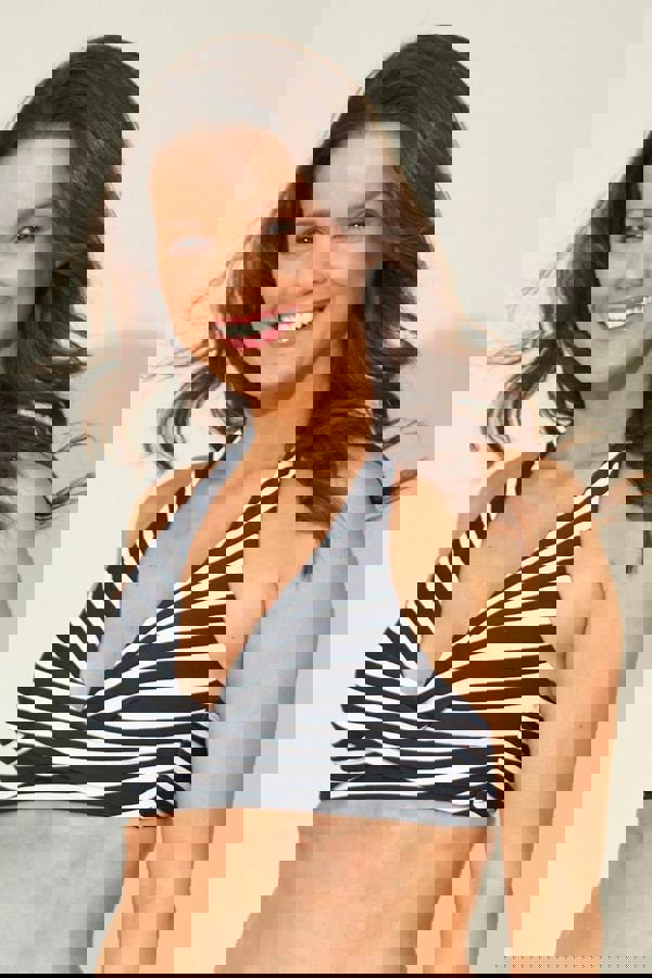 In the Beachcomber range, the Stripe Cross Over Bikini Top is a bikini top with a cross over front and a halter-style tie neck for a flattering, comfortable fit. Soft cups and full front lining add structure, while a clip back fastening keeps the finish secure and streamlined. The printed design coordinates with other mix and match styles.