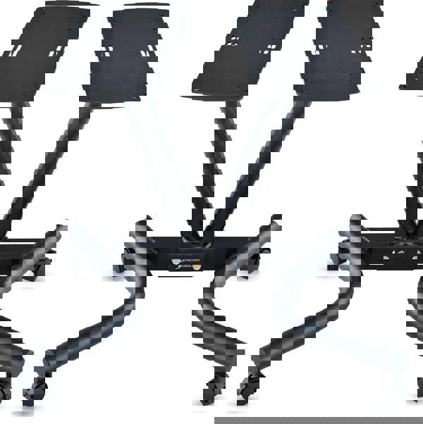 Ideal if you have limited floor space due to the ergonomic yet robust design, the Universal Adjustable Dumbbell Floor Stand is manufactured from heavy-duty steel finished in matte black.