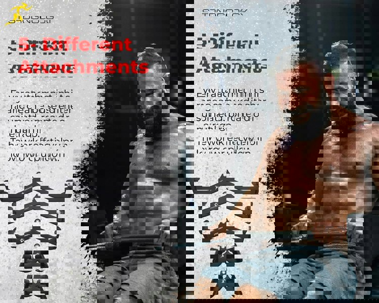 Each of the 5 attachments included comes with a super strong cable attachment point that ensures you can easily attach it to your pull bar and start lifting straight away.