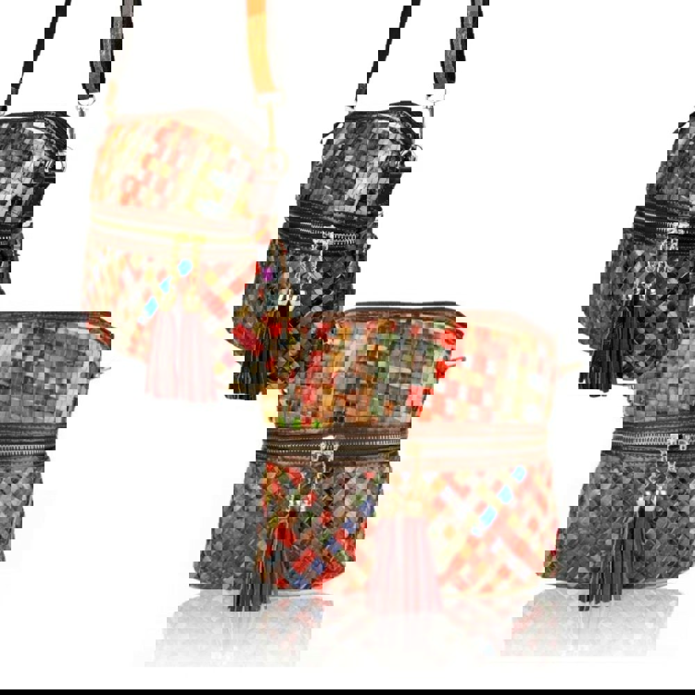 Celebrate timeless craftsmanship with this Italian Woven Leather Crossbody Bag. Handcrafted from genuine Italian leather, the patchwork weave design blends multiple colours to create a unique, eye-catching accessory.