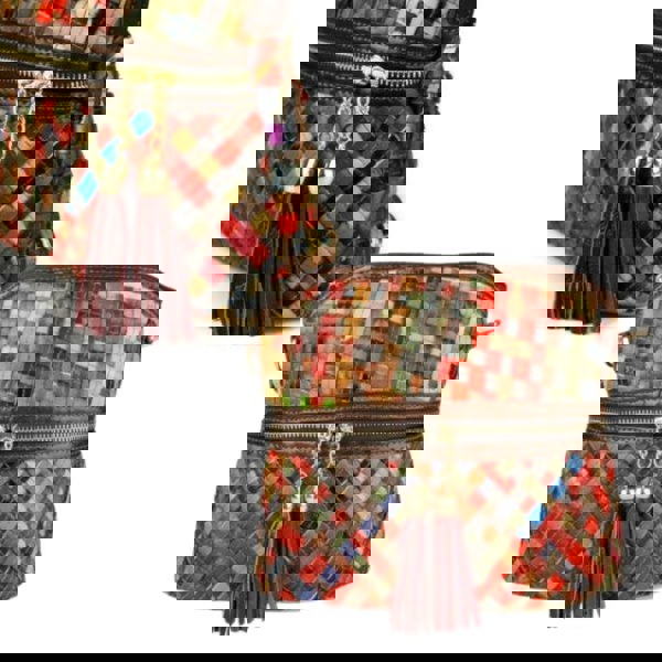 Design: Multi-colour patchwork with tassel zip pulls