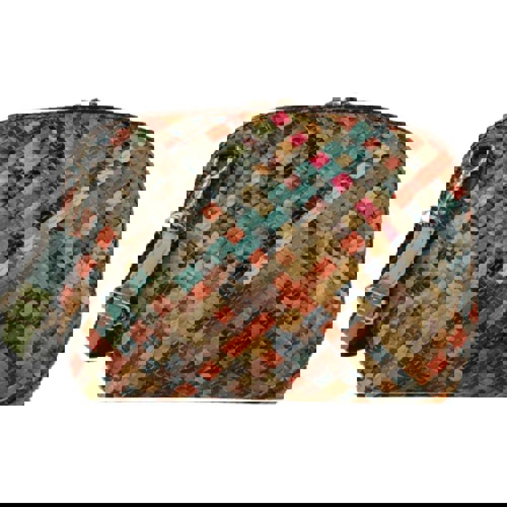 Make a statement with this Multi-Colour Plait Patchwork Messenger Bag, handcrafted from genuine Italian leather. The plaited patchwork design blends vibrant tones with premium leatherwork, creating a unique accessory that stands out in any collection.