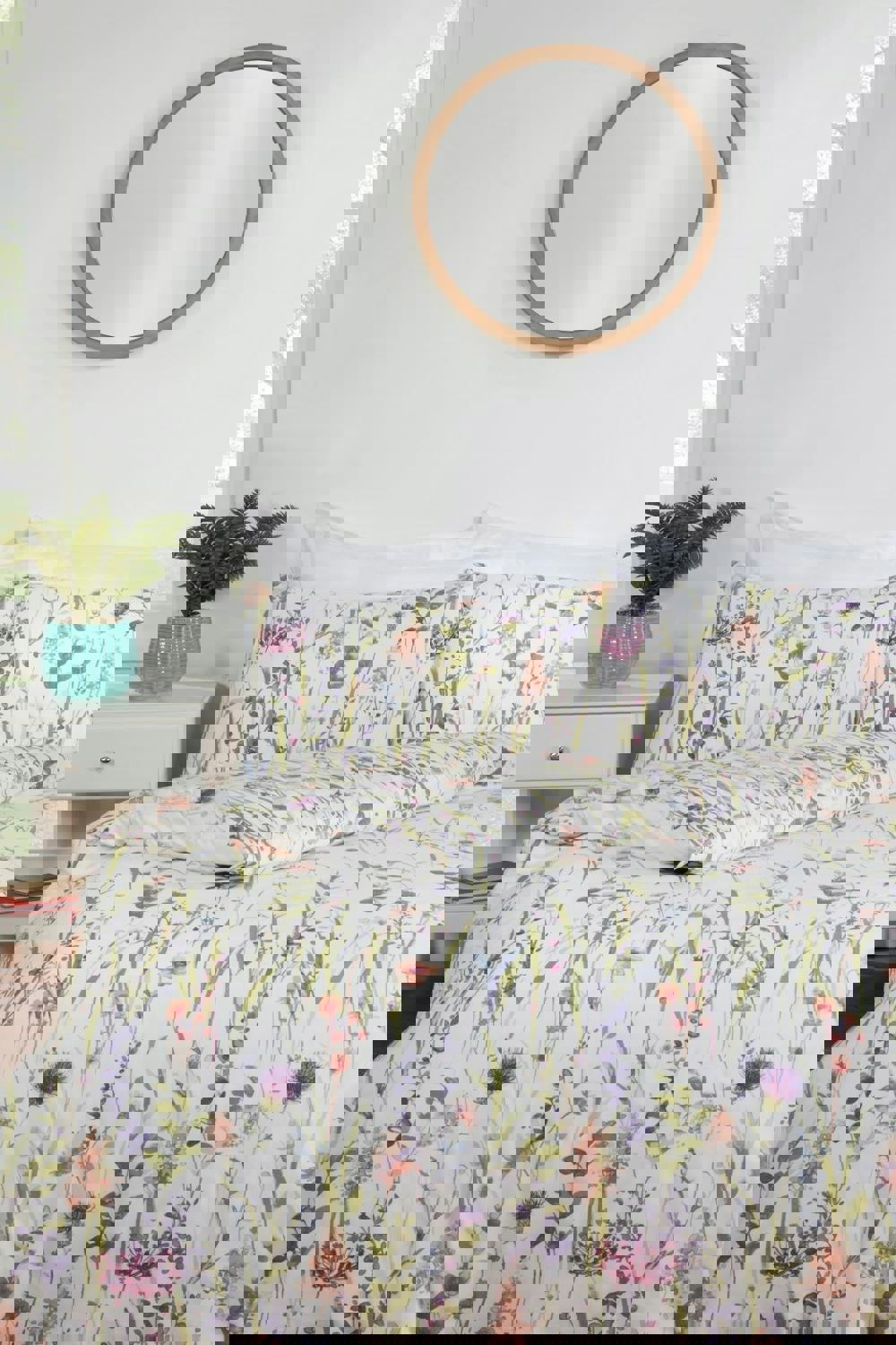 This stunning floral meadow design brings a splash of bright summer colours printed onto a crisp easy care, polycotton white fabric. This vibrant bedding will bring colourful warmth to your bedroom and the soft fabric a delight to sleep under. Matching curtains available separately. Made from soft 68 pick, 144 thread count polycotton, this set will be a refreshing addition to your bedroom.