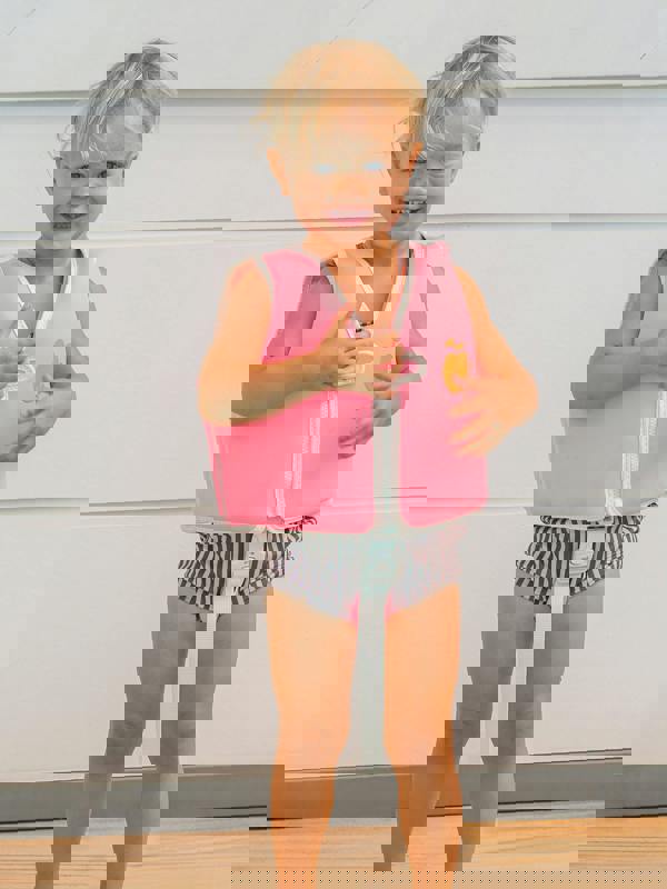 Bring a playful finish to warm-weather swim days with the Sunnylife Girls Poppy The Peach Swim Vest in Pink. Designed for summer adventures, it pairs a vibrant peach motif with a comfortable feel, making it a cheerful choice for poolside moments and time in the water. The bright, characterful design adds a pop of colour to your child’s swim essentials, while the vest’s considered construction is made to support easy movement during swimming and splashing.