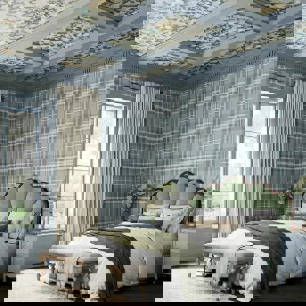 What gives the wallpaper its distinct charm is the illusion of texture a subtle emboss imitates the cosy, tactile quality of wool.