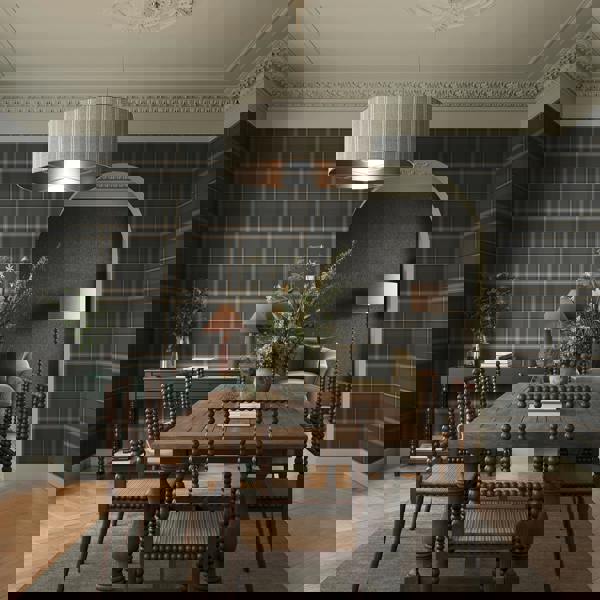 What gives the wallpaper its distinct charm is the illusion of texture a subtle emboss imitates the cosy, tactile quality of wool.