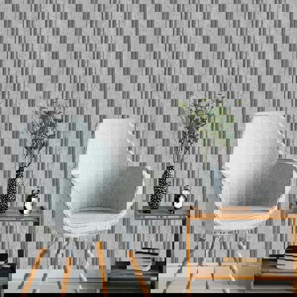 From Superfresco, the Glitz Slats Charcoal Wallpaper brings a modern, textured look with a subtle glitz finish for a refined touch of shimmer. Deep charcoal tones and a sleek slatted design add visual depth, while the delicate sparkle catches the light to create interest without dominating the room.