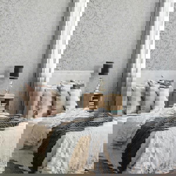 From Superfresco, the Hedgerow Wallpaper in grey and pale gold brings a considered, decorative finish to your walls, combining a soft grey background with a shimmering rose-gold metallic effect. The hedgerow-inspired sprig pattern creates a gentle sense of movement, while metallic foil detailing catches the light to subtly shift the look of the design as the day changes.