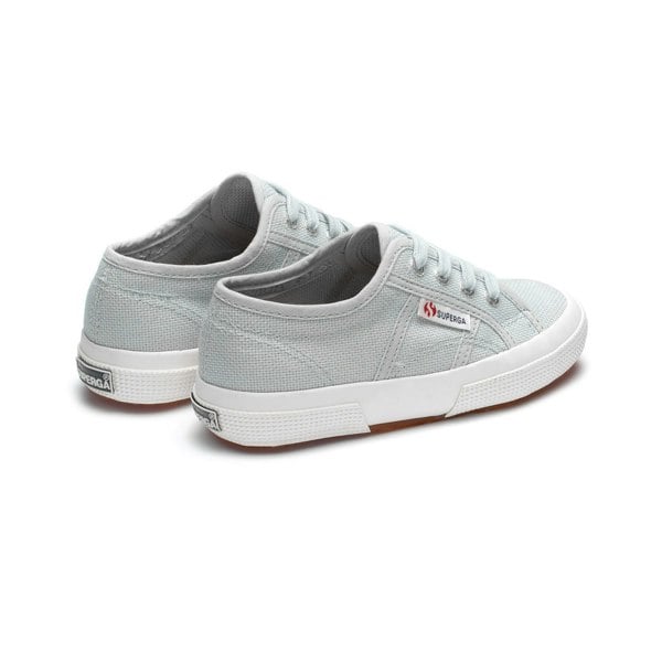 These Superga childrens trainers come in Grey Lilla/Avorio with a low-cut profile and a round toe. The upper combines canvas and cotton, paired with a cotton lining and a leather insole. A flat vulcanised gum sole completes the construction.