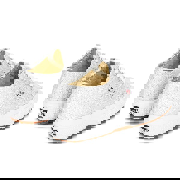 These Superga 2750 Lamew lace up trainers come in a grey silver finish with a low-cut profile and flat sole. The upper combines cotton canvas with metallic thread, paired with a lamé fabric for a distinctive look. A round toe shape and four eyelets complete the classic lace-up front, while the logo detail adds a branded touch.