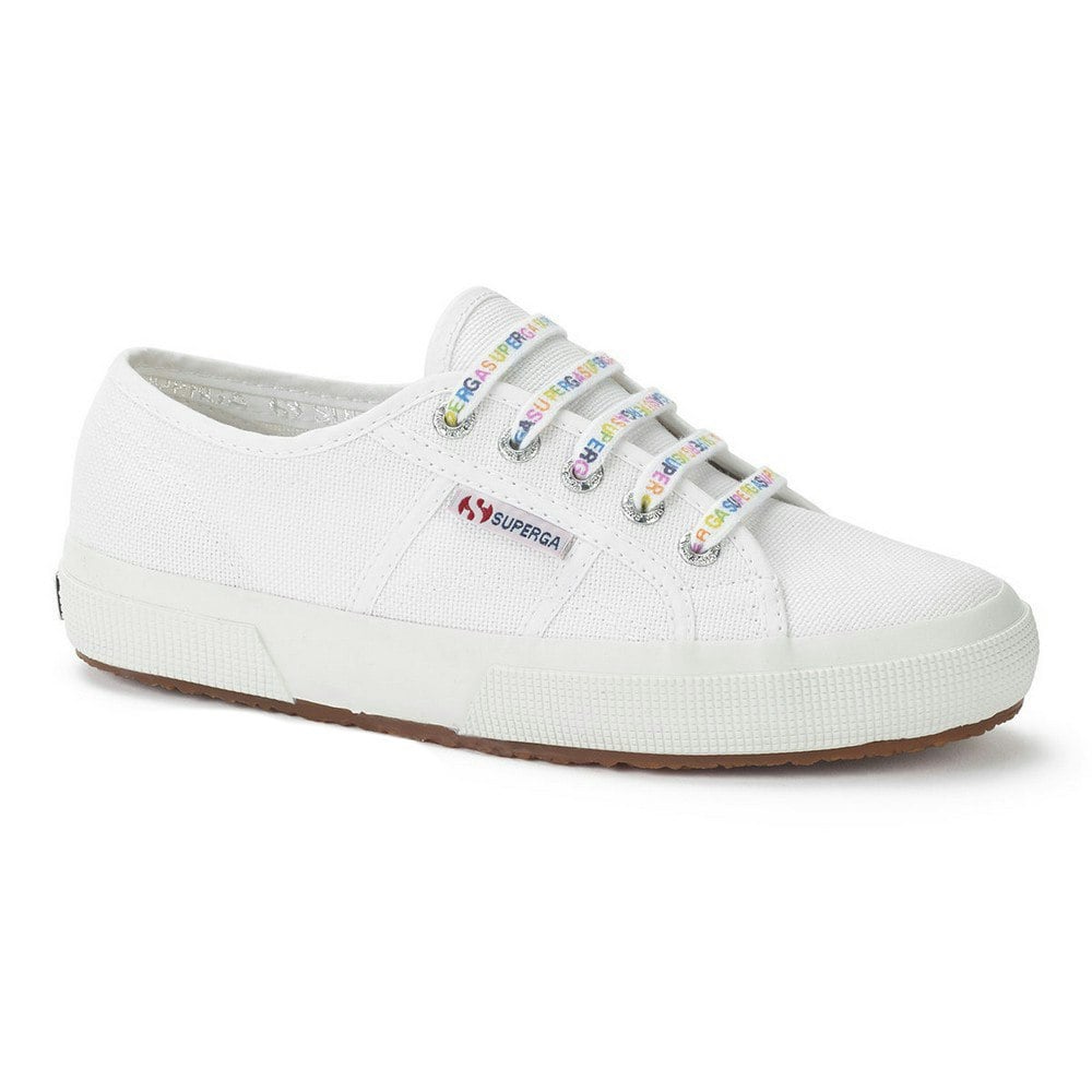 Refresh your footwear with these Superga shoe laces in 100% cotton. Finished in a multicoloured rainbow palette, they bring a bold accent to trainers and casual shoes while keeping the look clean and simple. The design includes Superga logo detailing for a branded touch.