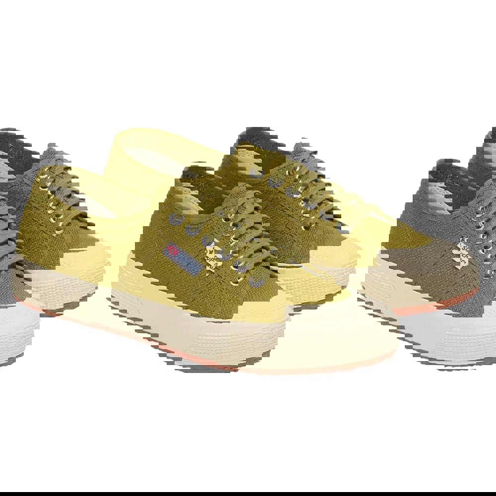 These unisex Superga 2390 Military trainers come in military green and off white with a low-cut profile and flat sole. The upper and lining are made from cotton, paired with a synthetic insole and a vulcanised rubber outsole. A plain design is finished with logo detailing and a round toe shape.