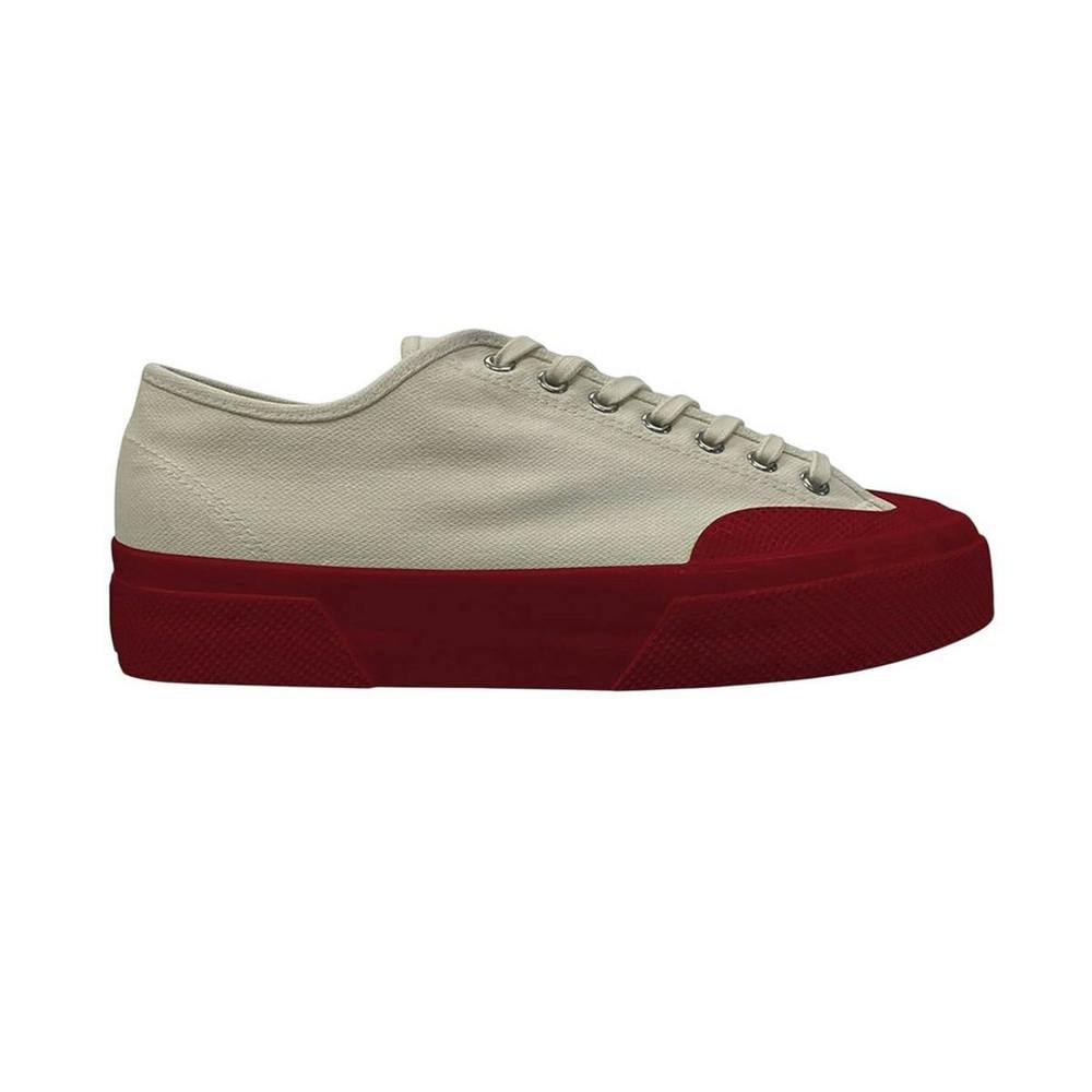 These Superga 2432 Collect trainers come in an off white and red colourway with a low-cut profile and a round toe. The upper is made from cotton twill and the pair fastens with lace-up laces through seven eyelets. A flat sole completes the silhouette, finished with logo detailing for a clean, branded look suited to everyday wear.