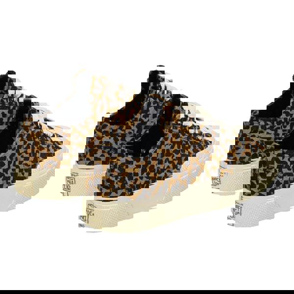 These low cut trainers combine calf leather uppers with a leopard print design in brown and off white. A lace-up fastening runs through six aluminium eyelets, keeping the look clean and structured.