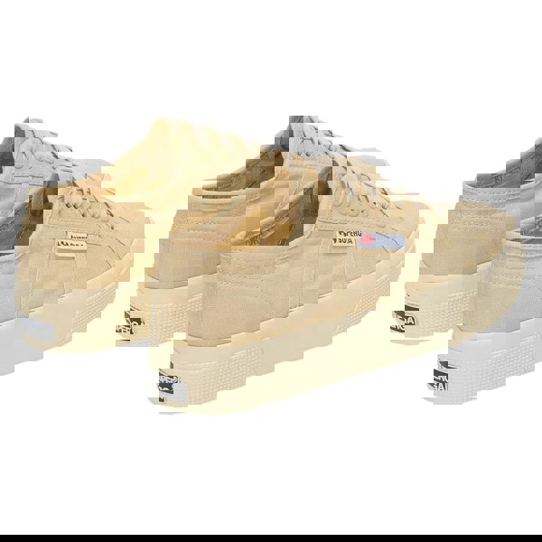 The lace-up fastening runs through six aluminium eyelets and is finished with cotton laces. Faux leather trim and a logo detail complete the design, with a 3.5cm heel height adding subtle lift through the platform sole.