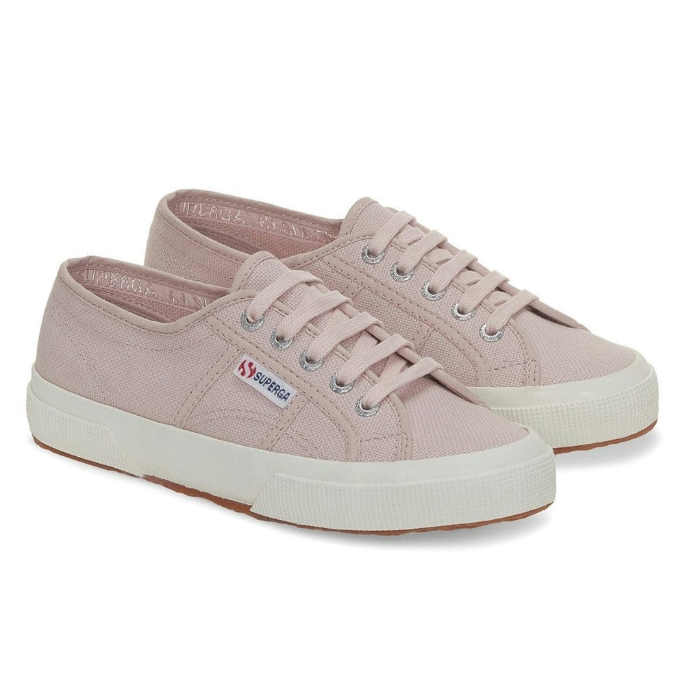 Superga 2750 Cotu Classic Vegan trainers in hushed violet/avorio. This unisex, low-cut style has a round toe and a flat heel, finished with a lace-up fastening through five eyelets. The upper is made from canvas and cotton, paired with a vulcanised gum sole.
