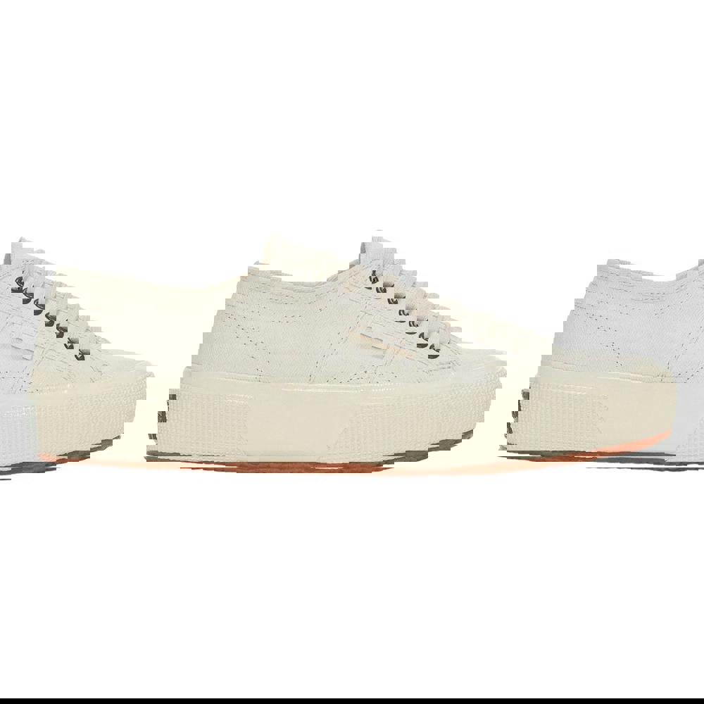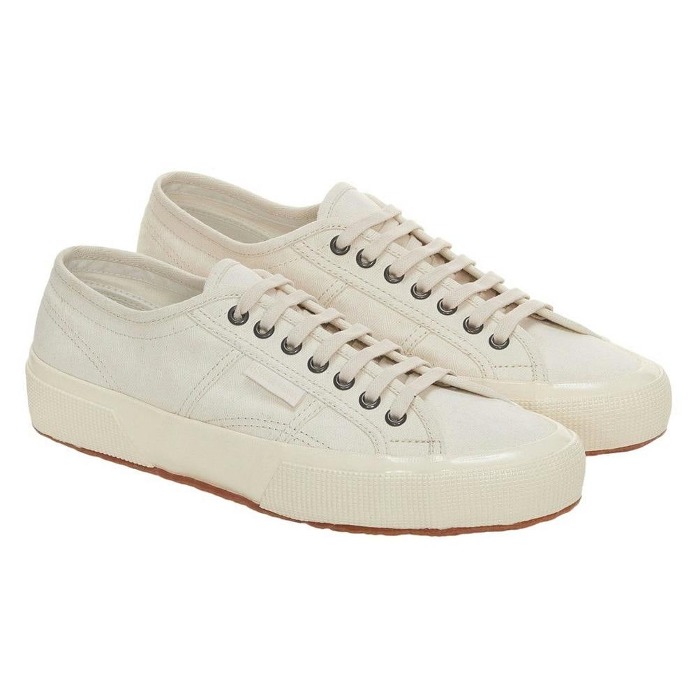 These unisex Superga 2750 Herringbone trainers come in Beige Raw/Off White with a low-cut profile and a flatform sole. The upper is made from reinforced cotton canvas, finished with contrast detailing and a patterned herringbone design. Logo branding appears across the shoe, including a branded heel and branded tab.