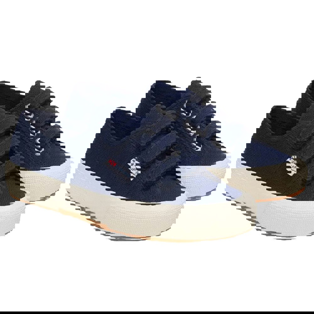 These unisex adult trainers combine a low-cut profile with a flat sole and a round toe. The upper is made from synthetic material, paired with a breathable cotton lining for a comfortable internal feel. Finished in navy and off white, the design includes logo detailing for a clean, recognisable look.