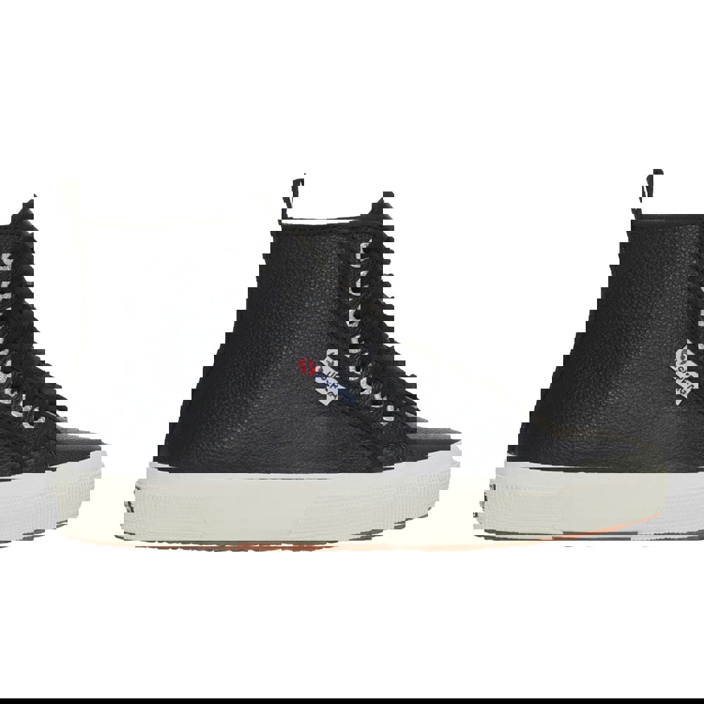 Superga Unisex Adult 2750 Tumbled Leather Mid Cut Trainers - Black/White -