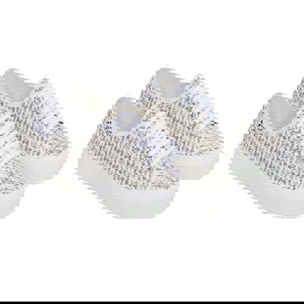 These unisex trainers combine a low-cut profile with a flat sole and a round toe. The upper is made from durable canvas, finished with a printed monogram and logo design in white and light grey. A lace-up fastening runs through five metal eyelets for a clean, classic look.