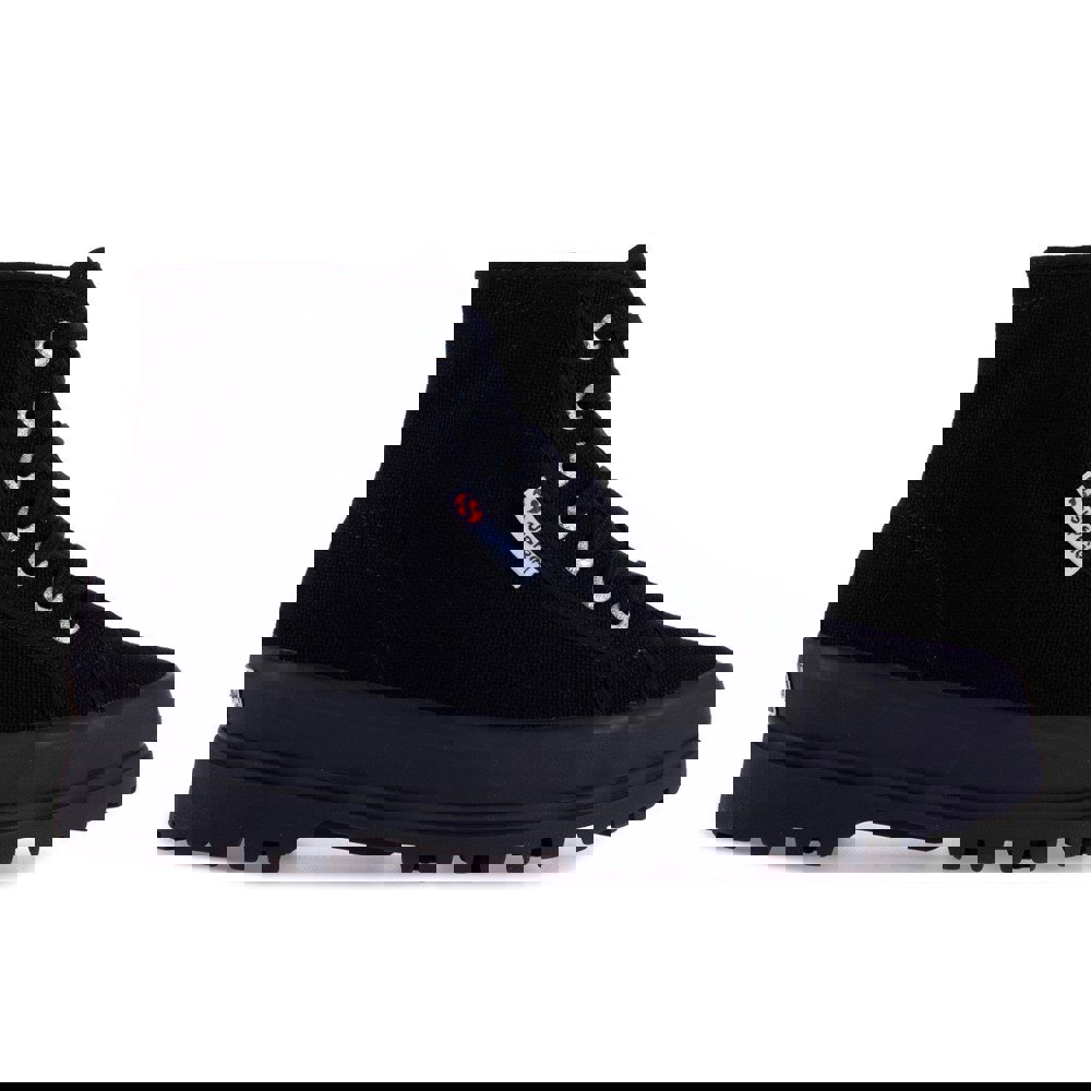 These Superga womens 2341 Cotu Alpina high tops come in blue anthracite with an ankle cut and a round toe. The upper is made from cotton canvas and finished with a logo detail. A lace-up front with cotton laces and seven eyelets secures the fit, with a pull-on option also listed.