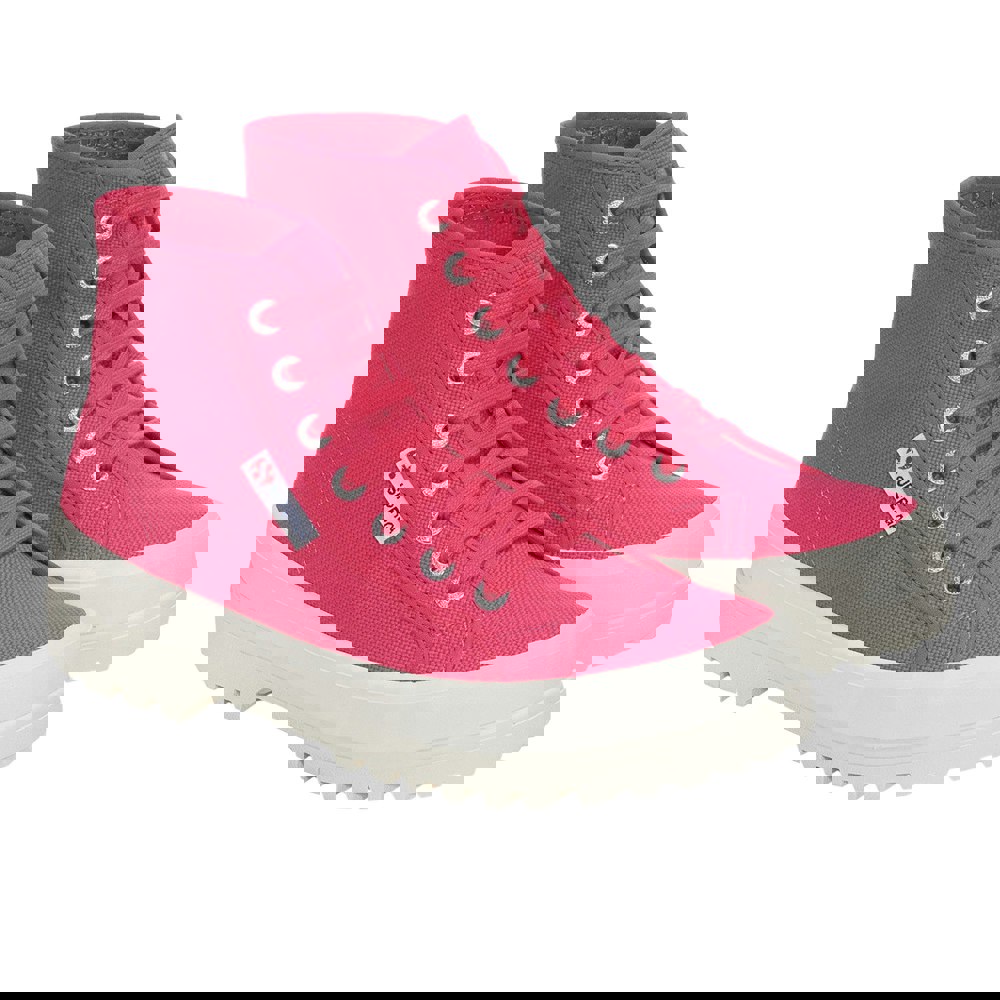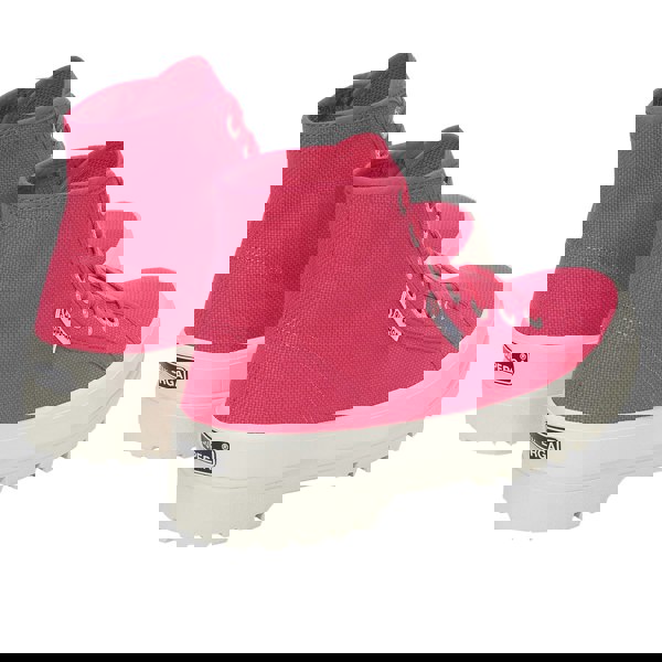 These Superga 2341 Cotu Alpina high tops come in fuchsia pink/avorio with an ankle cut and a round toe. The upper is made from cotton canvas and finished with a lace-up fastening, supported by seven eyelets and cotton laces. A pull-on entry adds an alternative way to get them on and off.