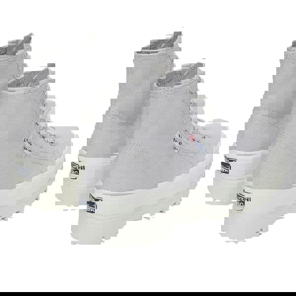 These Superga 2341 Cotu Alpina high tops come in Grey Silver/Avorio with an ankle-cut profile and a round toe. The upper is made from cotton canvas and finished with a logo detail. An unlined interior keeps the construction simple, while the vulcanised rubber outsole completes the base.