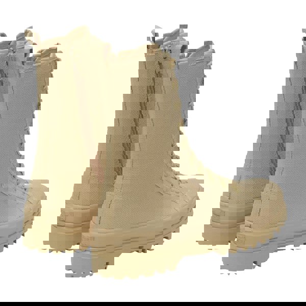 Superga 2641 Alpina high tops in Total Beige/Almond combine a canvas and cotton upper with a cotton lining. Cut to a high-top shape with a round toe and flat profile, they fasten with lace-up closure and a side zip for easy on and off. Engraved aluminium eyelets and a 10-eyelet layout complete the lacing detail, while branded touches include a heel detail, insole branding and a jacquard label. A nylon pull tab adds a practical finish.