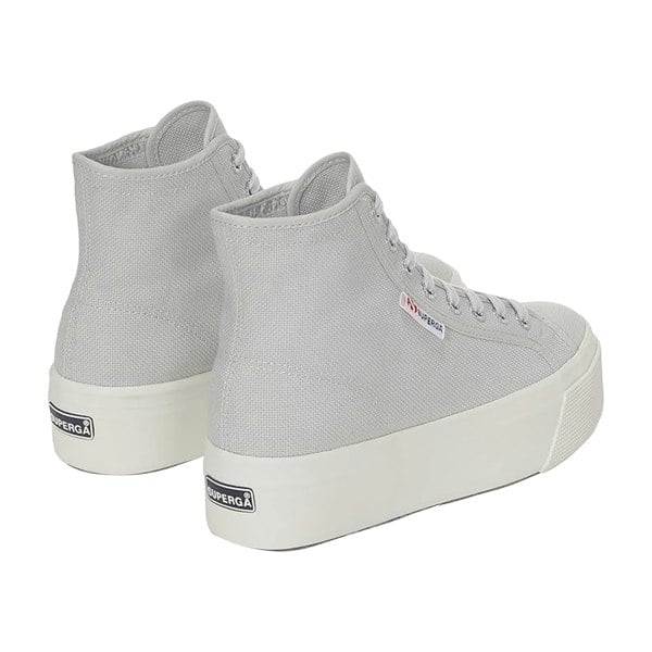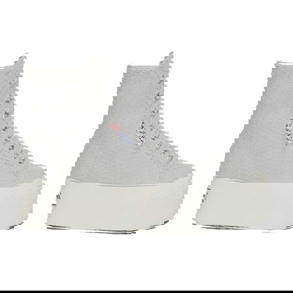 These Superga 2708 lace-up high tops come in a grey silver/avorio colourway with a high-top cut and round toe. The upper is made from cotton canvas and finished with a logo design. An 8-eyelet lace-up fastening secures the fit, with cotton laces and engraved aluminium eyelets.