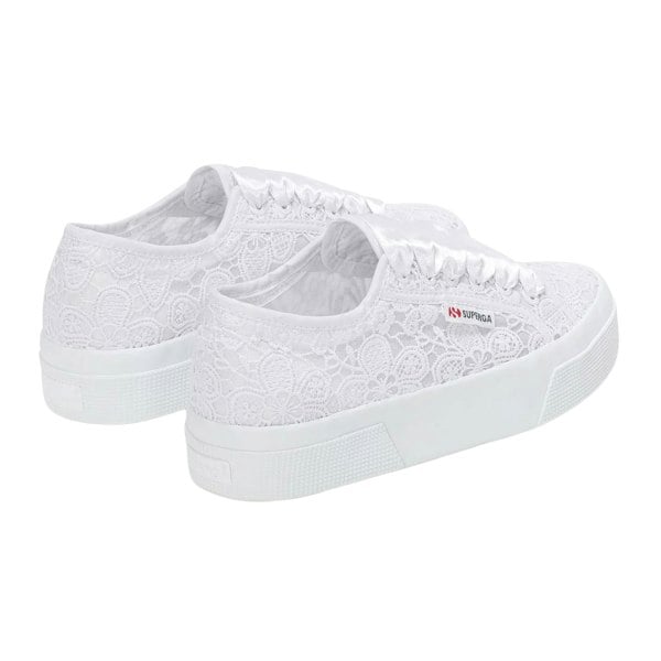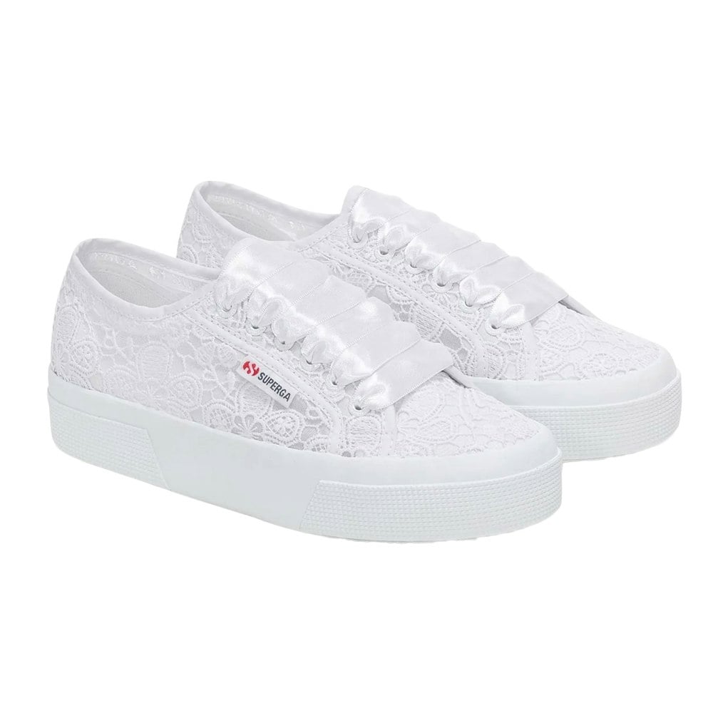 These Superga women’s 2740 trainers in Total White combine a low-cut profile with a platform sole and floral macramé lace upper. A breathable organza lining sits alongside a synthetic insole and midsole, creating a clean, structured finish for everyday wear.