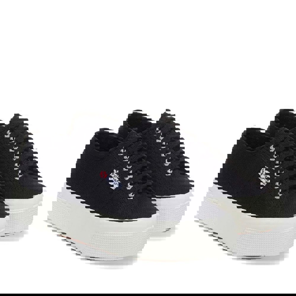 These Superga 2740 lace-up platforms are finished in black with a low-cut profile and a round toe. The upper is made from cotton canvas, paired with a natural rubber and vulcanised rubber outsole. A lace-up fastening runs through six eyelets, keeping the look clean and classic.