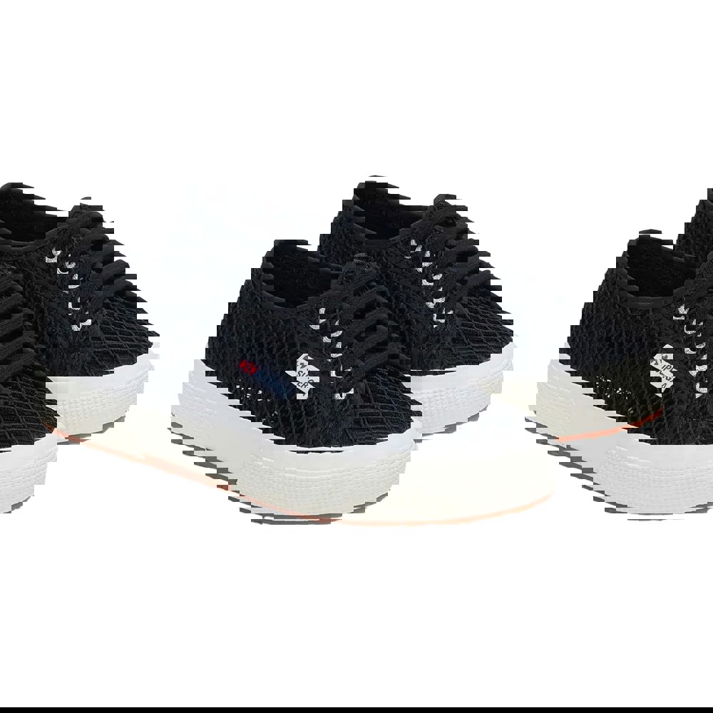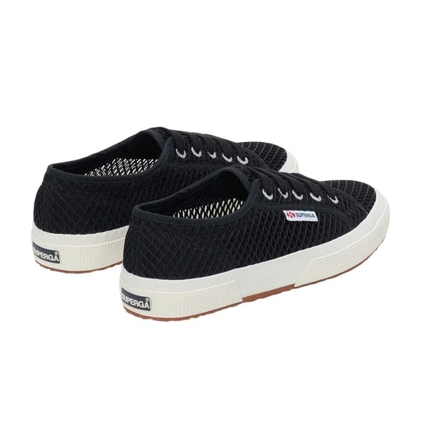 These Superga 2750 mesh trainers come in black and white with a low-cut profile and a flat sole. The upper combines mesh and polyester, paired with a cotton lining with partial lining for a clean internal finish. A round toe and lace-up fastening keep the look classic, while textured detailing and logo accents add definition.