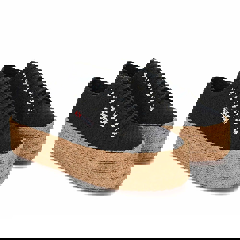 These Superga 2790 Rope trainers in black combine a cotton canvas upper with a cotton lining and a rope and vulcanised rubber outsole. Cut low with a round toe, they sit on a chunky platform sole for a distinctive profile.