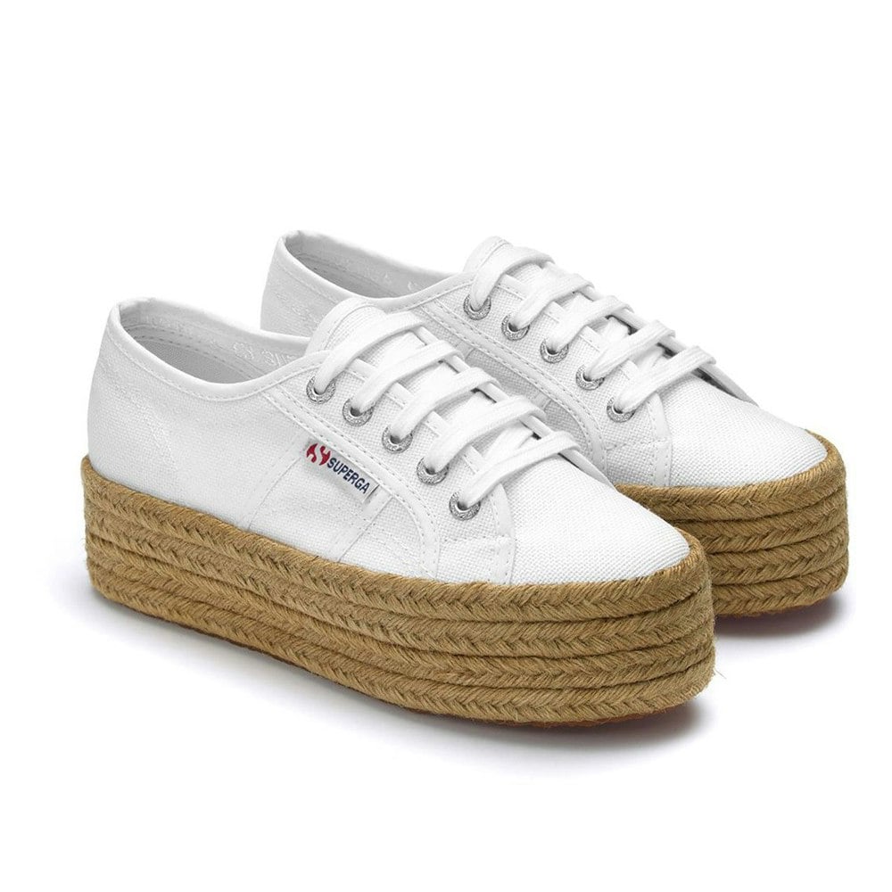 These Superga 2790 Rope trainers bring a platform profile to a low-cut silhouette. The upper is made from cotton canvas with a cotton lining, finished with a lace-up fastening through six eyelets. A round toe and chunky sole shape complete the design, with logo detailing and a branded heel.