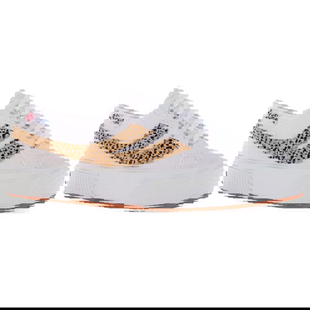These Superga women’s 2953 Cotu trainers combine a cotton and cow leather upper with a vulcanised gum sole. Finished in white with a cheetah print and logo detailing, the low-cut profile sits neatly at the ankle for everyday wear.