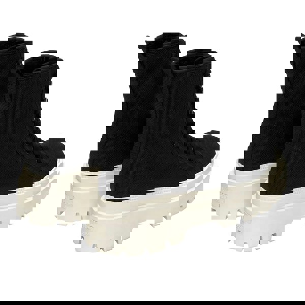 These high-top shoes combine a cotton canvas upper with a chunky lug sole in rubber. Finished in Black/White Avorio, the design includes a platform heel and a round toe for a clean, structured look. An unlined construction keeps the interior simple, while the lace-up fastening uses cotton laces threaded through nine aluminium eyelets. A logo detail, jacquard label and pull tab complete the exterior.