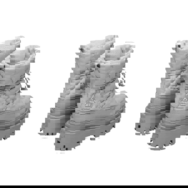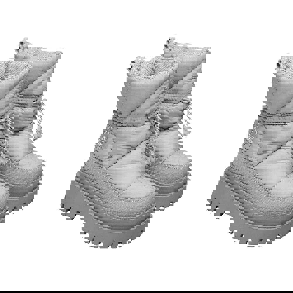 Superga 3053 Alpina Apex padded boots in triple grey with an ankle-high cut and a plain finish. The upper is made from nylon ripstop with padded construction, paired with a mesh lining for a clean internal feel. A round toe and platform heel complete the silhouette, while a pull tab supports easy on and off.