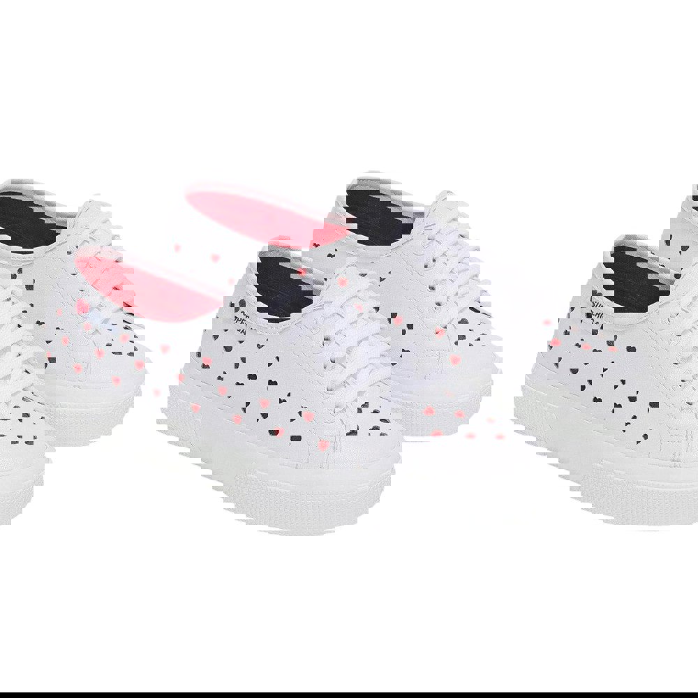 These Superga 3750 Leggera Hearts trainers bring a low cut profile with a flat sole and round toe. The white and red design includes cut-out heart detailing and logo accents, finished with a lace-up fastening for a secure fit.