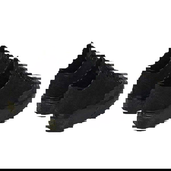 These low cut work trainers are made with a suede upper and a vulcanised rubber cupsole outsole. The plain design is finished with reinforced panels and a textured toe style, plus a rubber toe cap for a defined front profile. A lace-up fastening with waxed cotton laces and seven aluminium eyelets completes the clean, all-black look.
