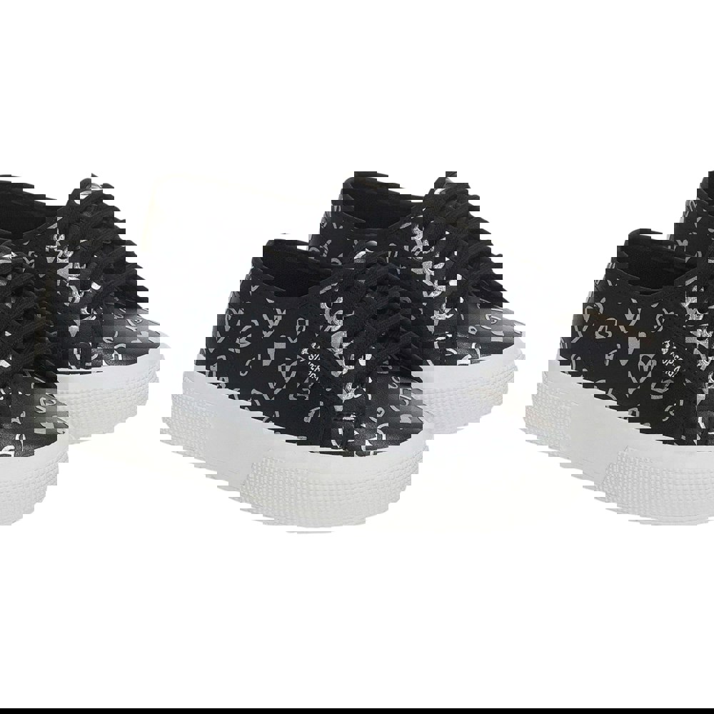 These low-cut trainers combine a synthetic vegan leather upper with a cotton lining and a vulcanised rubber outsole. Finished in black and silver, the design is detailed with a hearts motif and a round toe for a clean, classic profile. A lace-up fastening with five eyelets keeps the look simple and secure for everyday wear.
