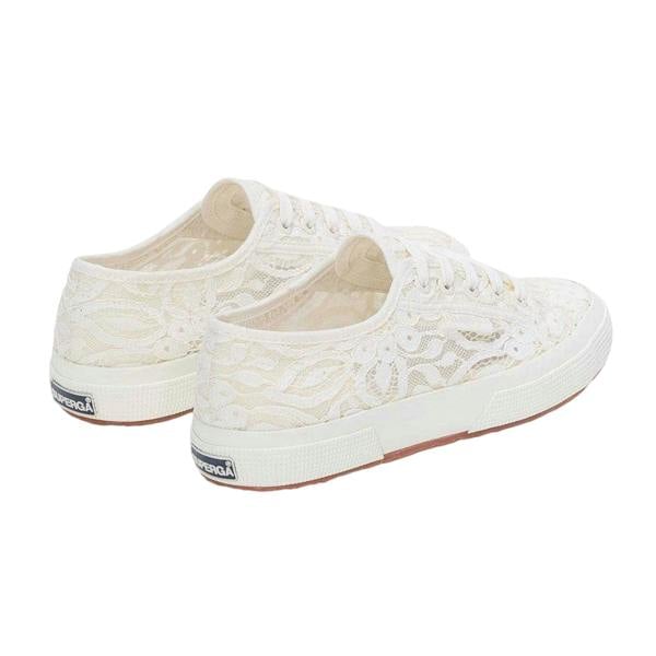 These Superga 2750 macramé trainers combine a low-cut profile with a round toe and flat sole. The upper is made from macramé lace, finished with an embossed floral and logo design. A lace-up fastening runs through five eyelets, with engraved aluminium and branded eyelets adding a distinctive detail.