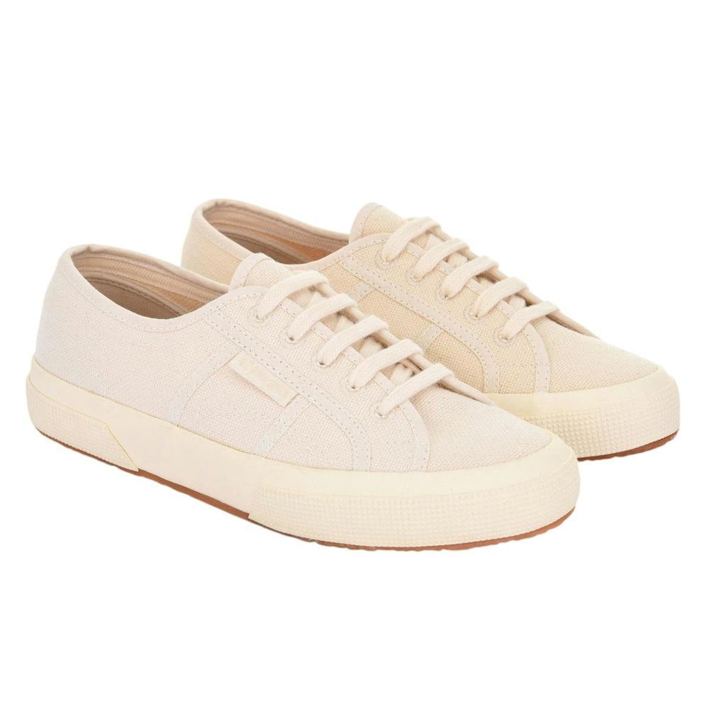 These Superga 2750 trainers come in a natural beige finish with a low-cut profile and a flat sole. The upper combines natural hemp with organic cotton, paired with a lace-up fastening through five eyelets. A round toe completes the classic trainer shape, while logo detailing adds a clean branded touch.