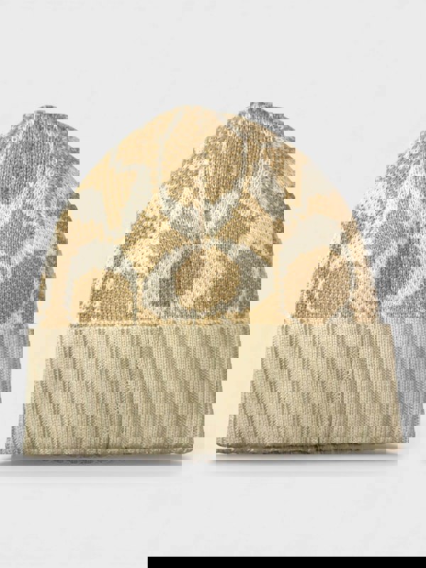 Elevate your winter wardrobe with this luxurious Coach Signature Jumbo Beanie in a refined camel beige.