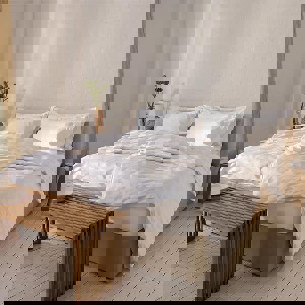 From Surrey Down, this white goose feather and down Duvet is designed to deliver a considered balance of warmth and weight for everyday comfort. Filled with 85% goose feather and 15% goose down, it’s finished with a premium 233 thread count cotton cover for a smooth, tightly woven feel.