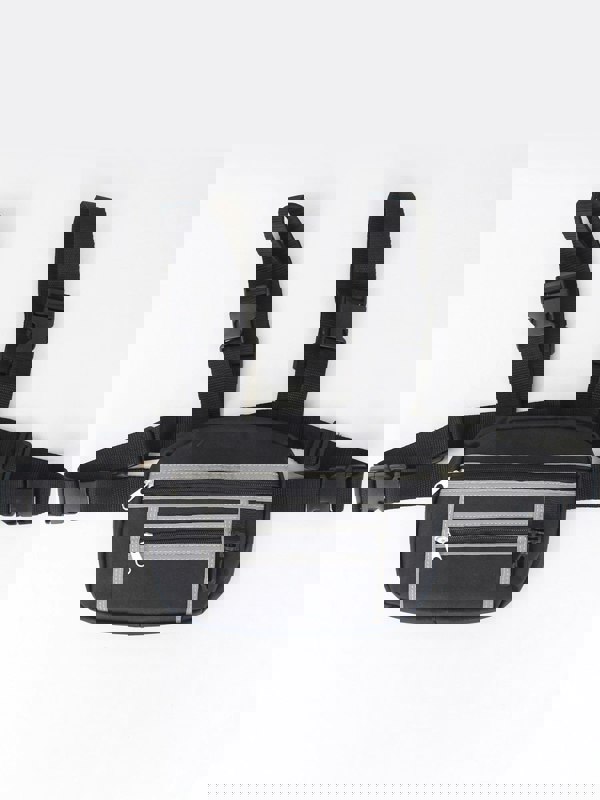 Introducing the Black Chest Bag with Silver Trim by SVNX—a versatile and stylish accessory for casual dressing. With its eye-catching reflective trim and adjustable straps, this trendy bag combines functionality with flair. Perfect for day-to-day use, it’s your ideal companion for on-the-go convenience.