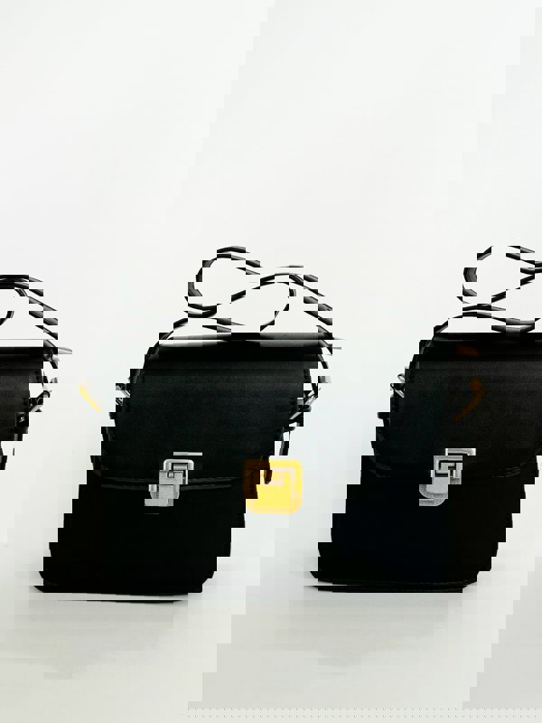 Elevate your wardrobe with the Black Shoulder Bag with Gold Clasp Fastening by SVNX. This classy and stylish essential features two straps for versatile wear, making it a go-to piece you'll effortlessly gravitate toward. Its elegant design easily complements any outfit.
